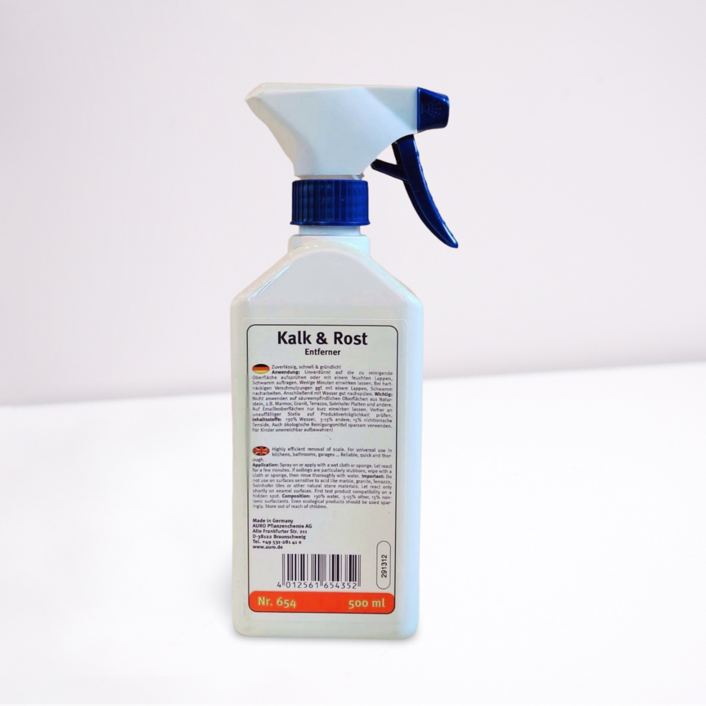 AURO Kalk & Rost Entferner ist ein wirksamer Spezialreiniger zur Entfernung von Kalkablagerungen, Rostflecken und mineralischen Verschmutzungen. Er eignet sich für säurebeständige Oberflächen im Haushalt und Sanitärbereich sowie für ausgewählte Anwendungen im Innenbereich.